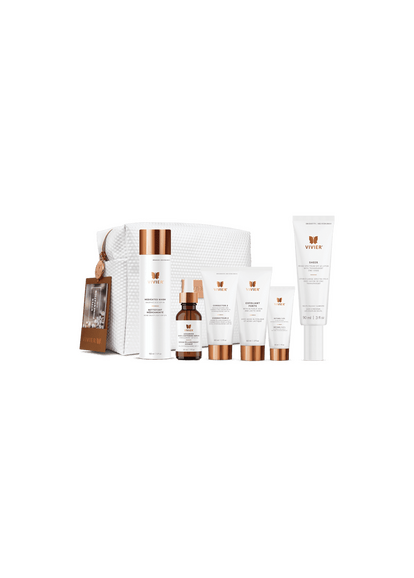 Votre somptueux Programme Signature inclut sept produits en format régulier de qualités pharmaceutiques dans un élégant sac à cosmétique: